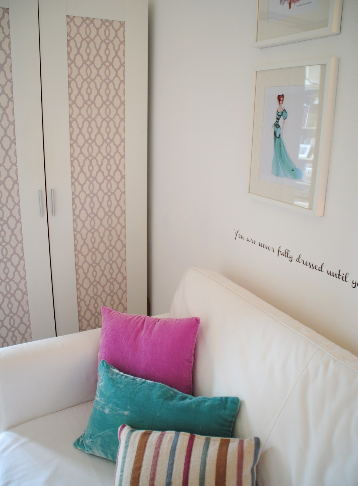 This closet is actually a closet and a litle guest room cause we need to place a mini couch for a parent that needs to stay! It was done for a romantic but practical woman ...A very special client!