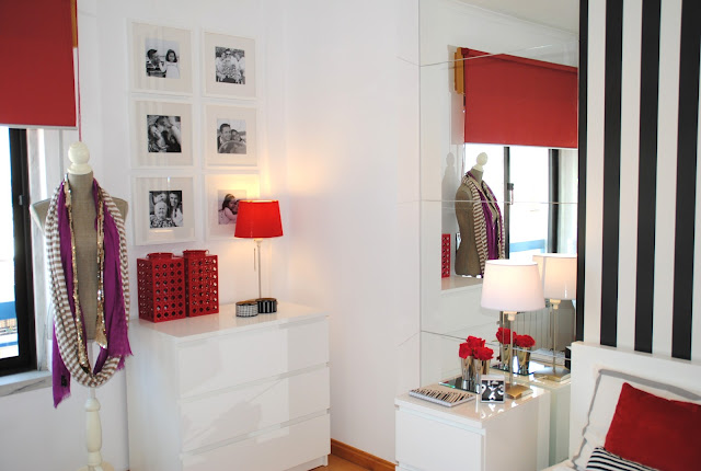Este closet é, na realidade, uma mistura entre closet e quarto de hóspedes já que havia necessidade de colocar um mini sofá cama para um familiar que precise de pernoitar! Já vos tinha mostrado partes deste projeto AQUI, AQUI e AQUI. Foi feito à medida de uma mulher prática mas romântica... Uma cliente muito especial!