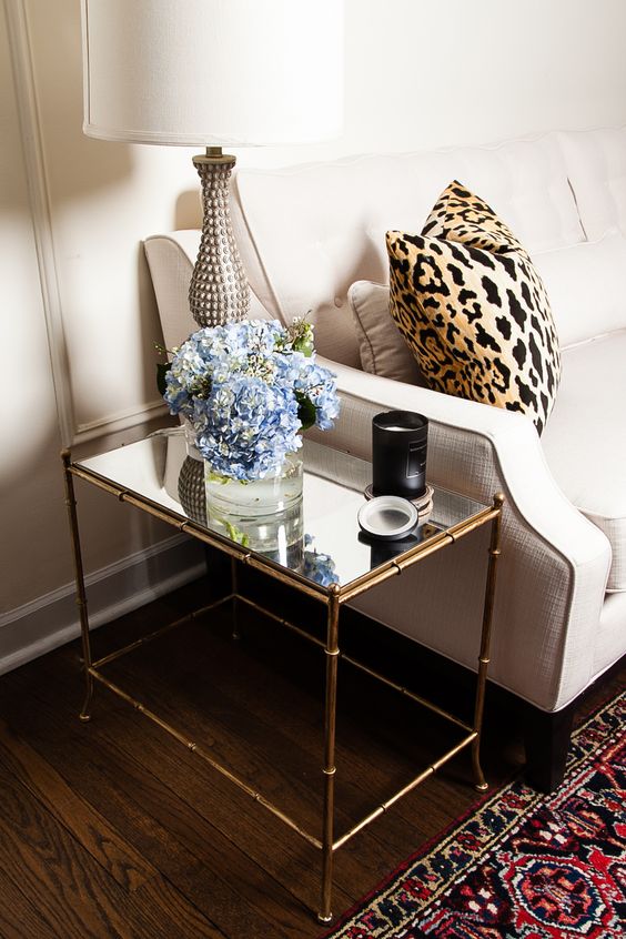 Há já uns tempo que as mesas de apoio douradas andavam por aqui a espreitar. Mas agora chegaram com tudo! Estão em todo o lado, um grande hit desta estação! Mais protagonistas quando combinadas com estofos em veludo, mais levezinhas quando vizinhas de linhos ou palhinhas... Nós já temos várias por aqui.. ;)