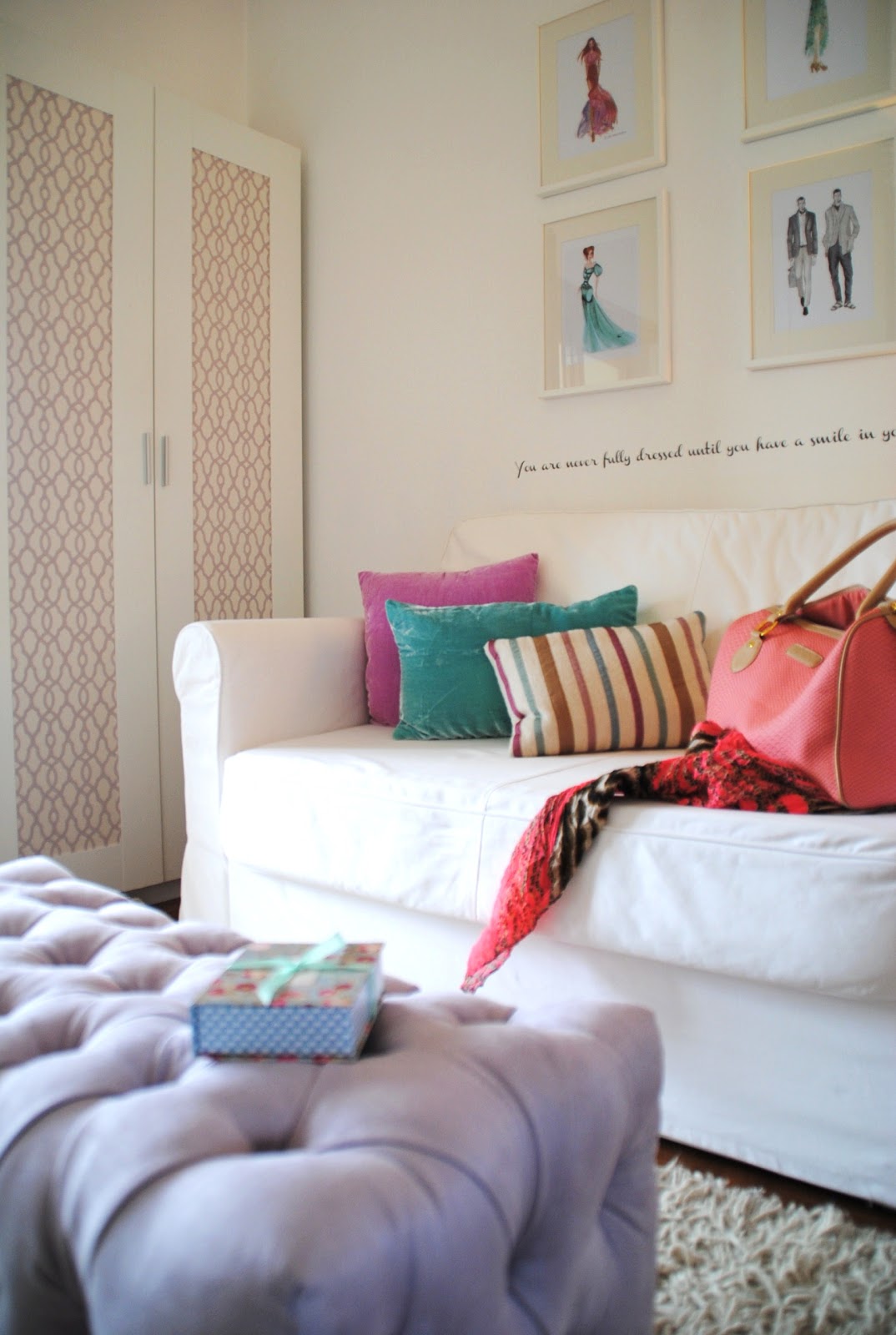 This closet is actually a closet and a litle guest room cause we need to place a mini couch for a parent that needs to stay! It was done for a romantic but practical woman ...A very special client!